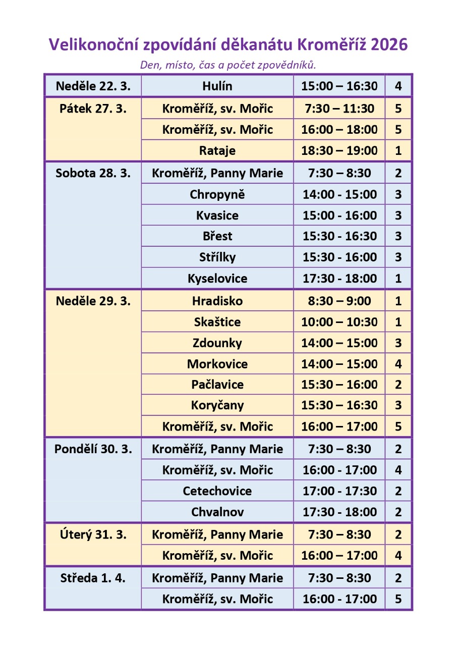 Pořad bohoslužeb od 8.3. do 15.3.2026